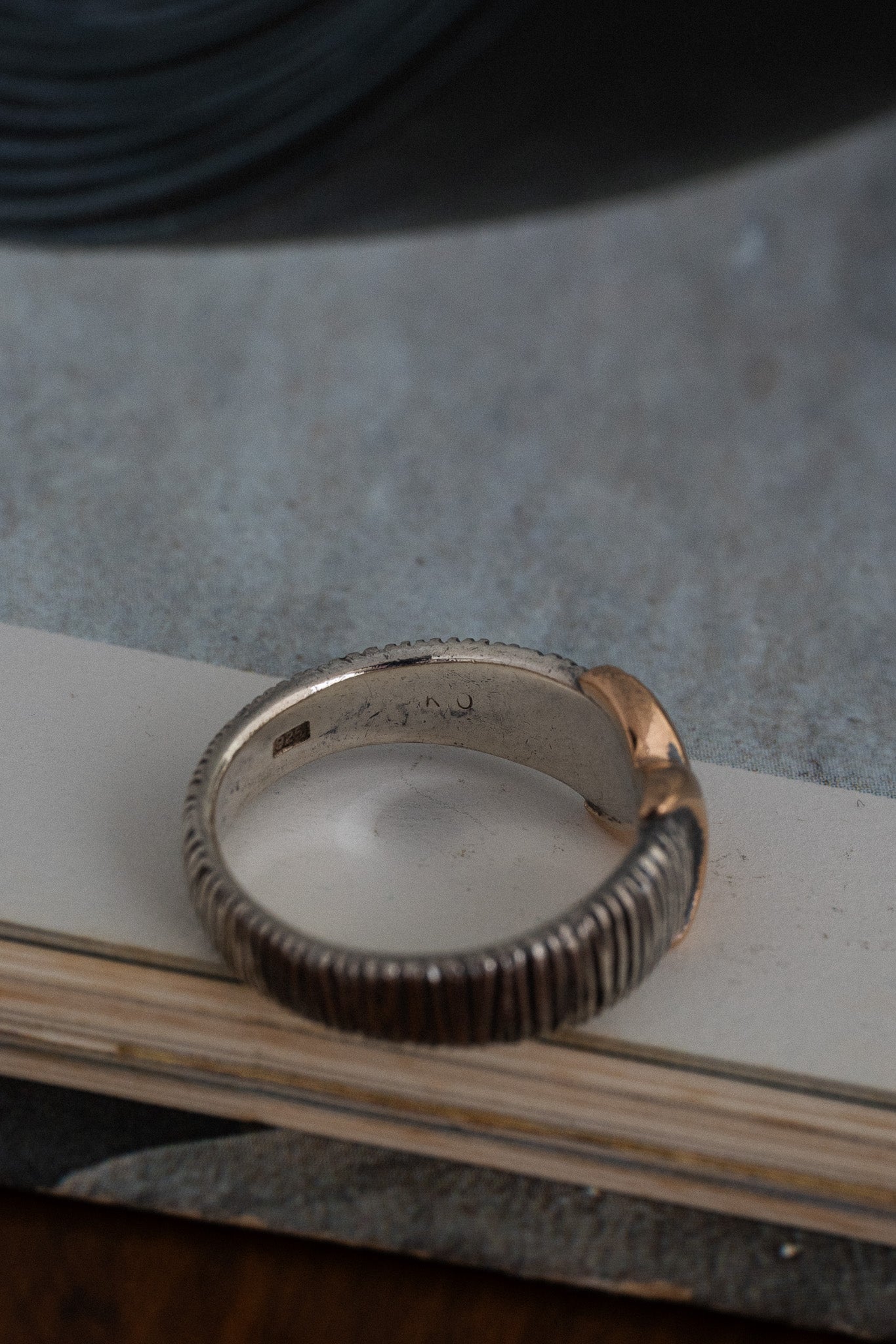 中央のK10ゴールドとシルバー925を組み合わせたヴィンテージリング。