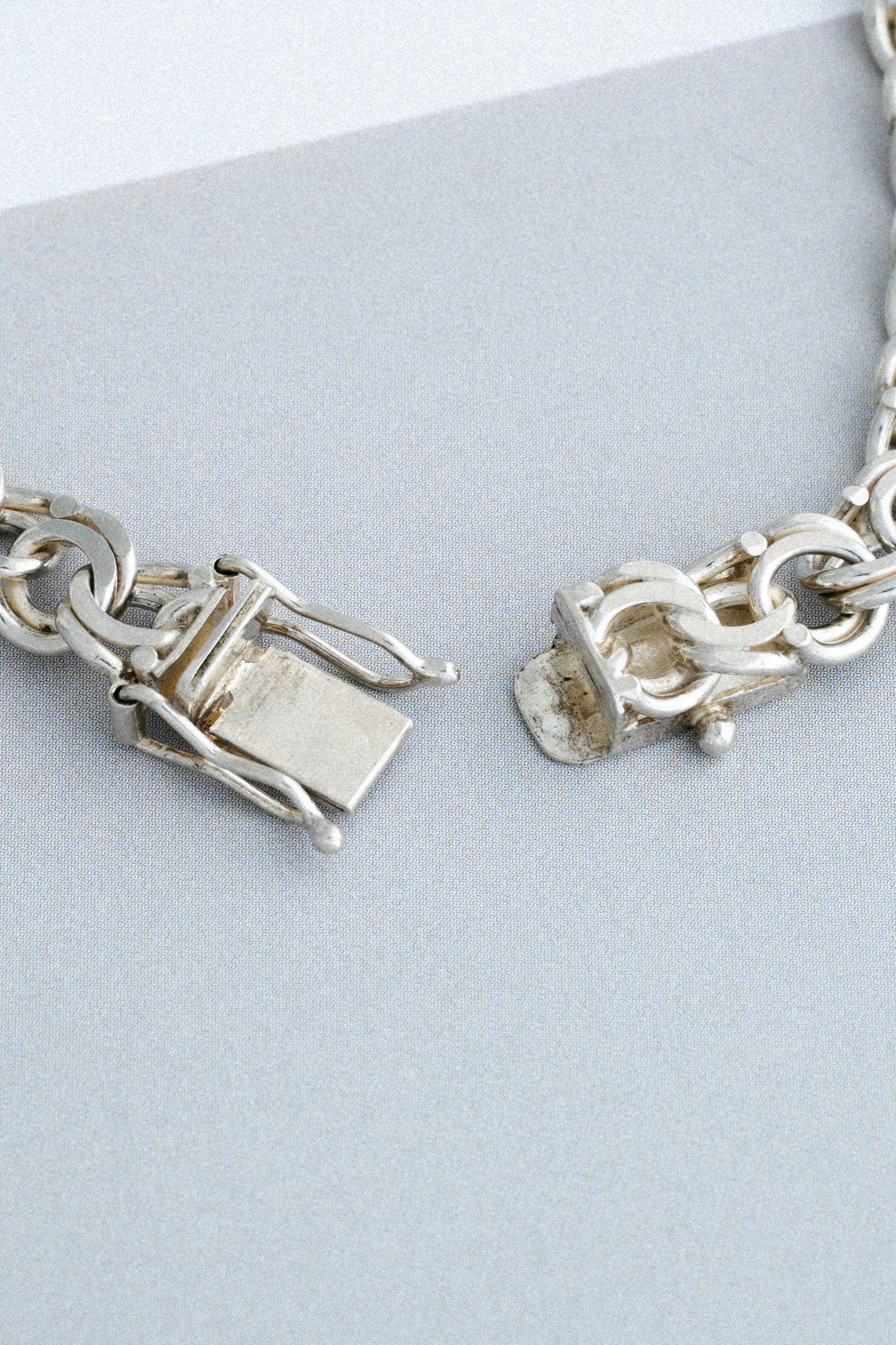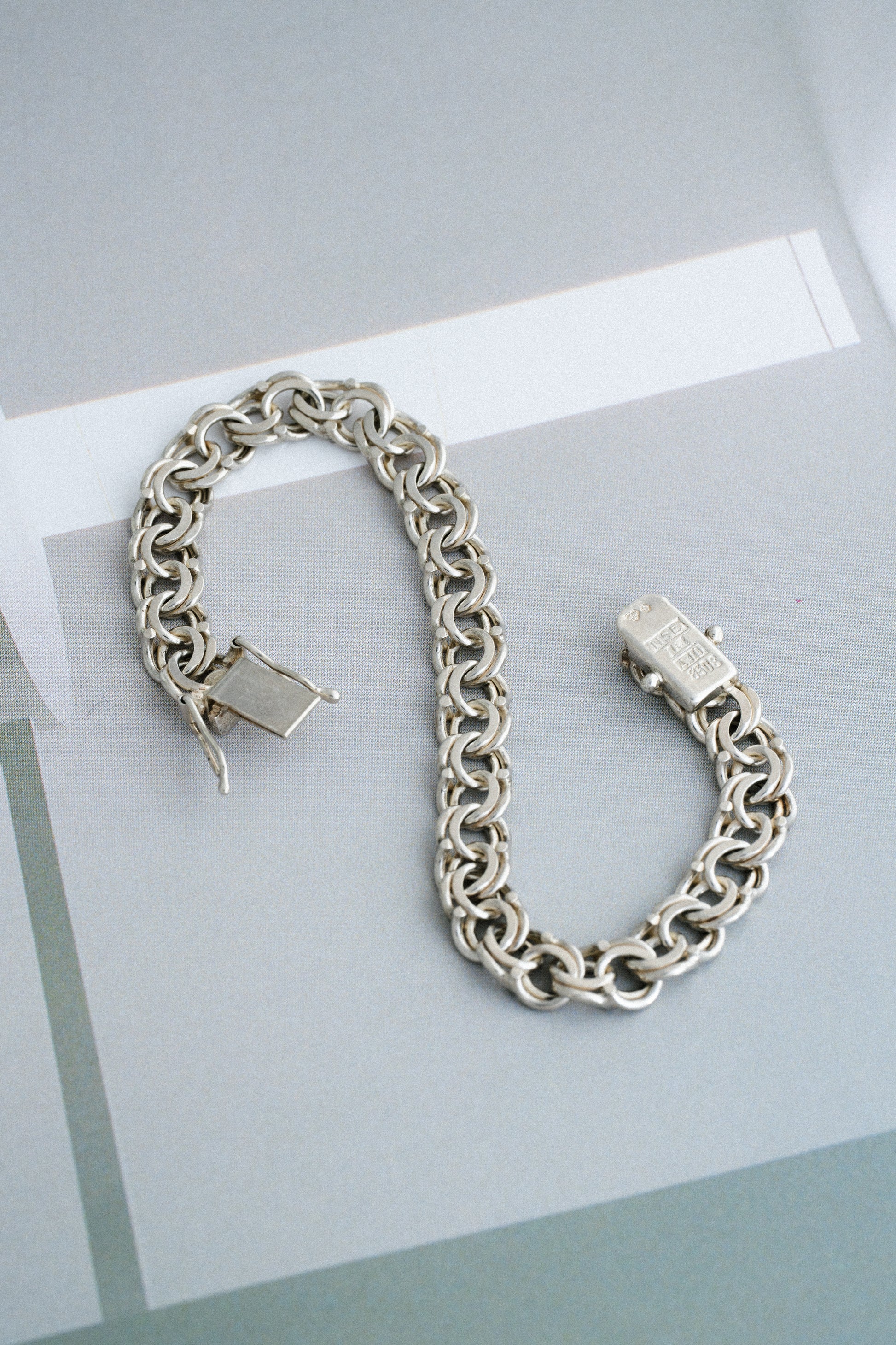 重なり合うダブルリンクが連なる、スウェーデン製のシルバーブレスレット。