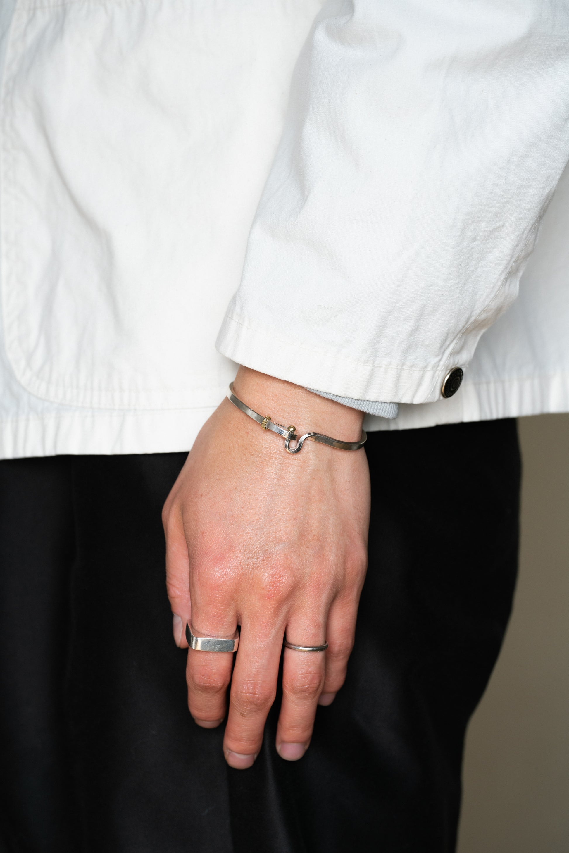 男女問わずご利用頂けるデザインで、単体でさらっと着けても、時計や他のブレスレットとの重ね付けでもバランスよく馴染みます。