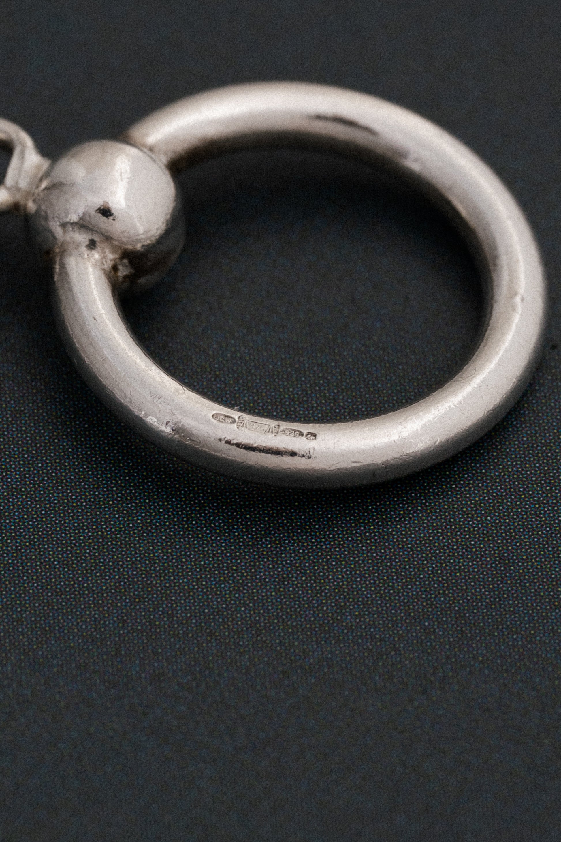 英国バーミンガムのホールマーク(錨)と、天秤のコモンコントロールマーク(CCM)、925の純度表示が入ったトグルブレスレット。